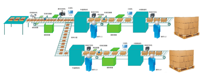 对生产企业进行生产线体的赋码改造,实现产品多级赋码(包含贴标、激光打码、油墨喷码、热转印、一体化包装印刷)、识别、剔除、分道、打印、关联、包装、堆垛以及多线体联动,将数码、软件和硬件有效的整合在一起,直接降低企业的管理成本和赋码效率。
